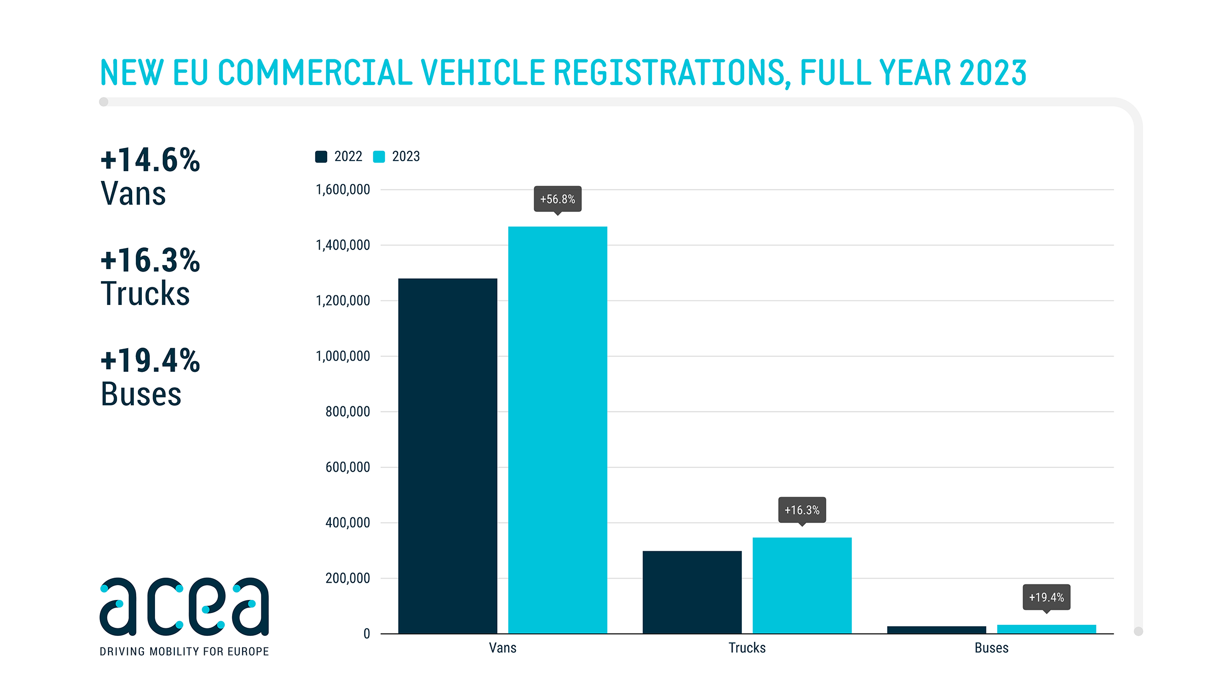New commercial vehicle registrations: vans +14.6%, trucks +16.3%, buses +19.4% in 2023