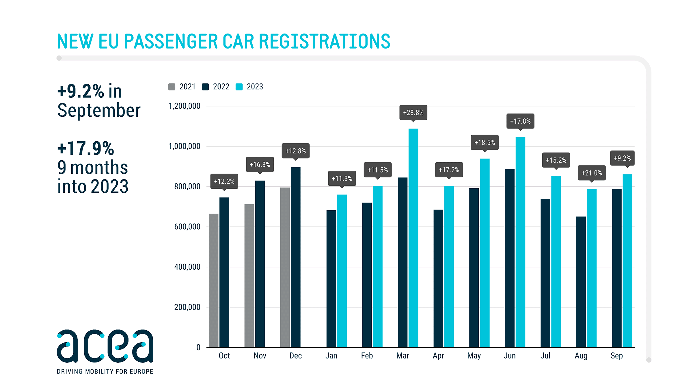 New car registrations: +9.2% in September; battery electric 14.8% market share