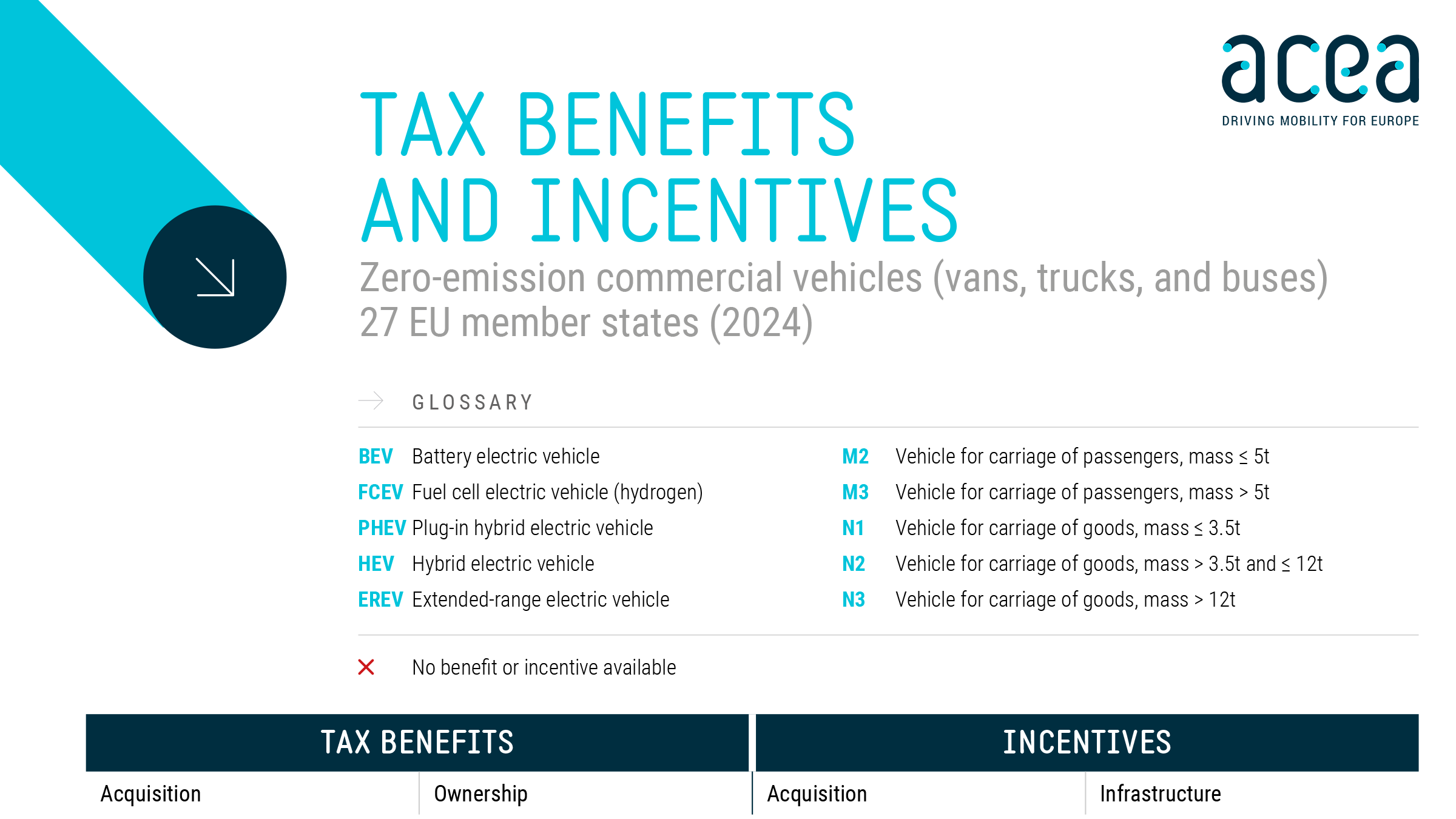 - Around a third of EU member states do not offer any incentives for commercial vehicle acquisition.